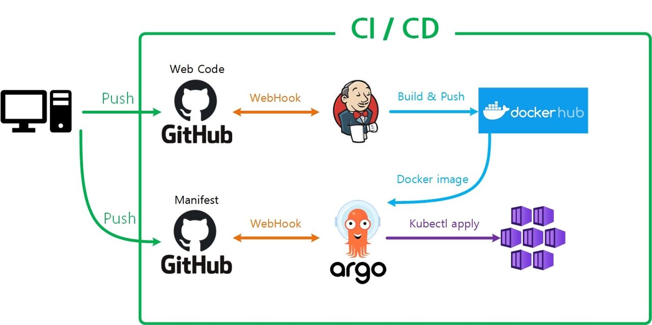 (Docker Hub에 Docker Image가 Push된 후 최신화된 Tag 값을 Manifest 파일에 적용시키고 Push)