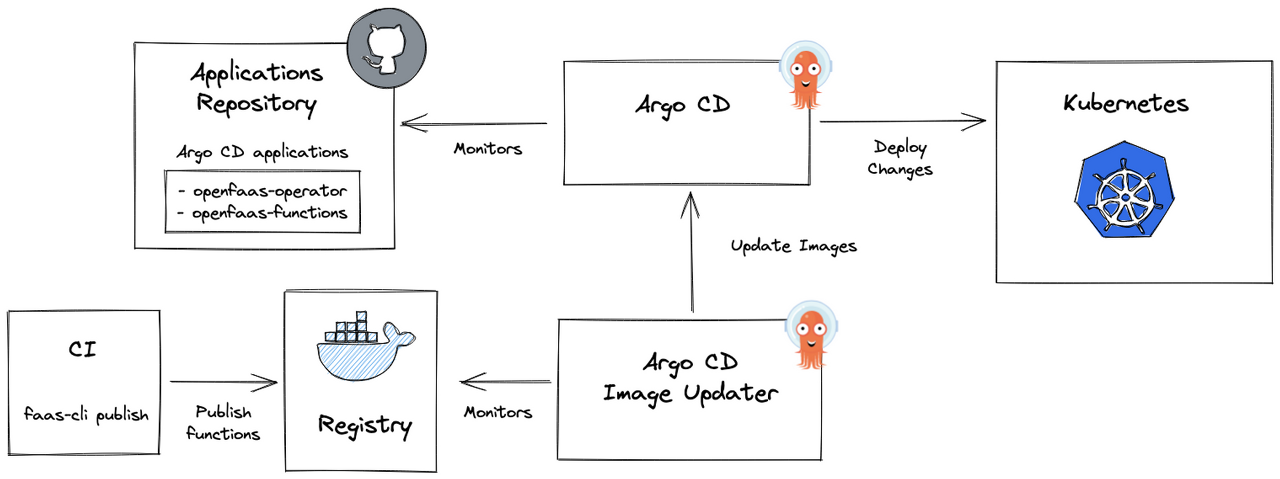 Argo CD Image Updater는 Argo CD에서 관리하는 Kubernetes 워크로드의 컨테이너 이미지를 자동으로 업데이트하는 도구입니다. 간단히 말해서 Argo CD 애플리케이션 리소스의 주석으로 지정된 이미지 버전을 추적하고 Argo CD API를 사용하여 매개변수 재정의를 설정하여 업데이트합니다.